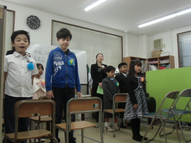 sampai tiba di panggil,semua tertib menunggu.ketika ijazah diserahkan,menjawab dengan lantang.Dan lagu jepang pun di nyanyikan dengan semangat.Terakhir,semua melihat album kenangan. Mulai hari ini semua murid sekolah dasar.
