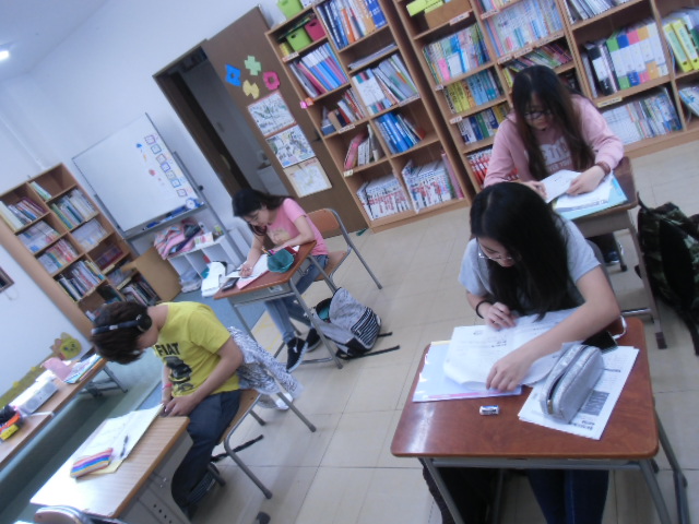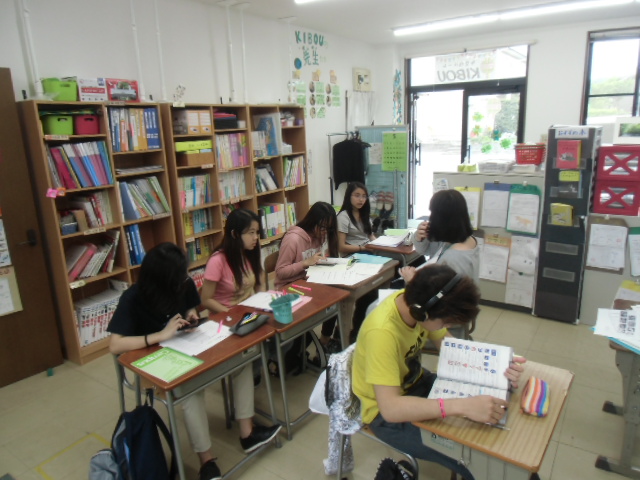 かねんれいクラスの子どもたちが勉強をしているようすです。高校にはいってから、初めてのテストをむかってがんばっている。。。みんな!がんばれ!!