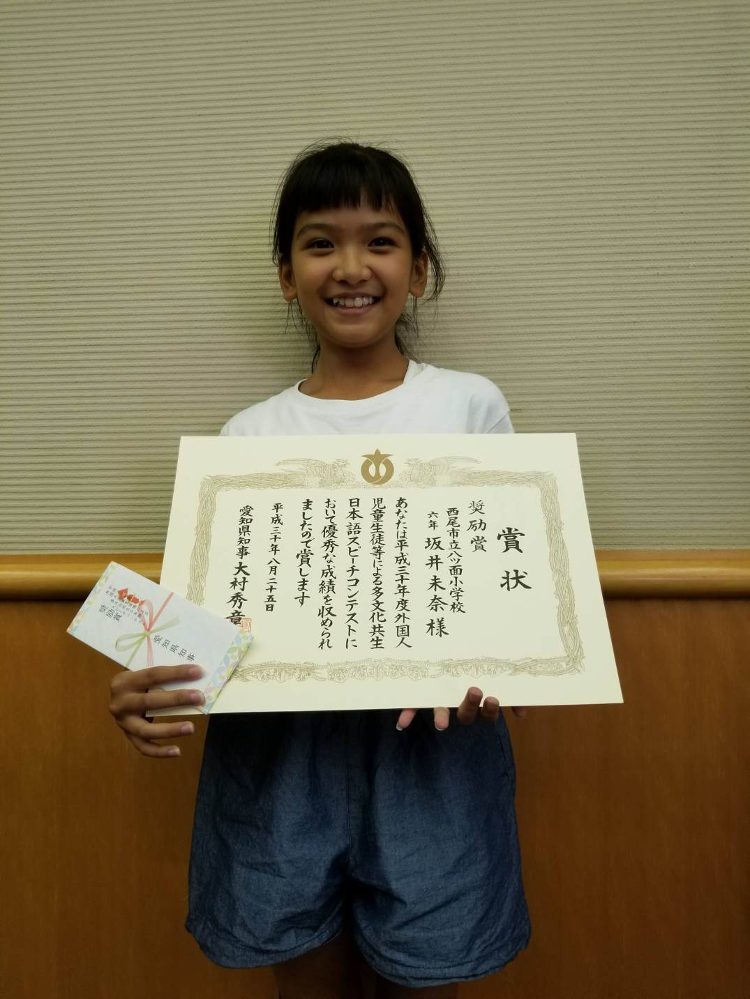 Kelas 6 sekolah dasar Sakai Mina sang berhasil mendapatkan Juara harapan.