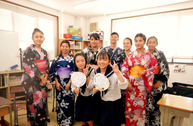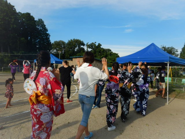 Eles ajudaram na distribuição da melancia aos participantes e dançaram a dança BON ODORI.