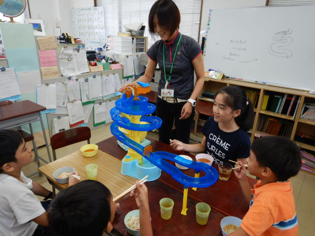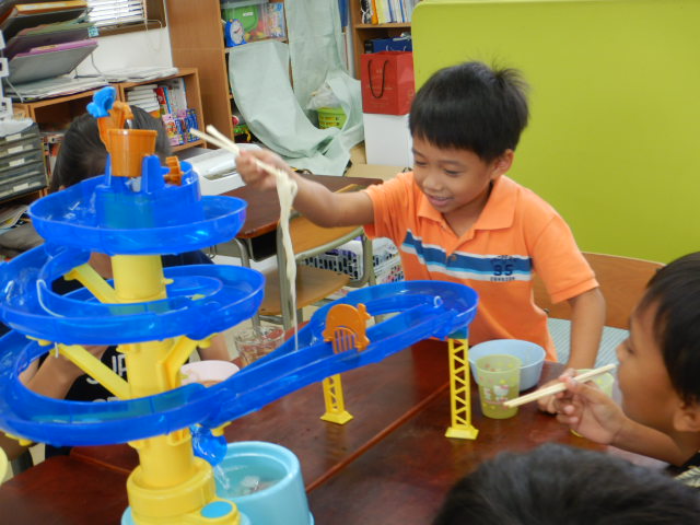 夏(なつ)の おわりの おやつは、“ながし そうめん” !(^^)!