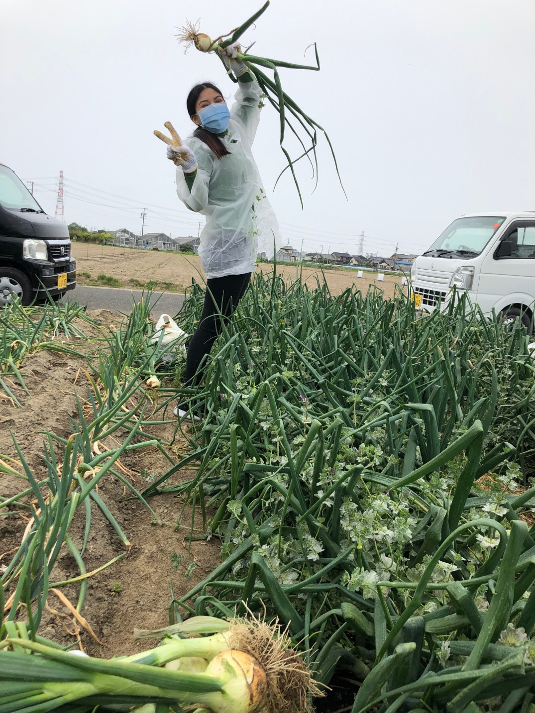 Để khuyên góp thực phẩm cho người dân, các em đã giúp đỡ chúng tôi thu hoạch hành tây!