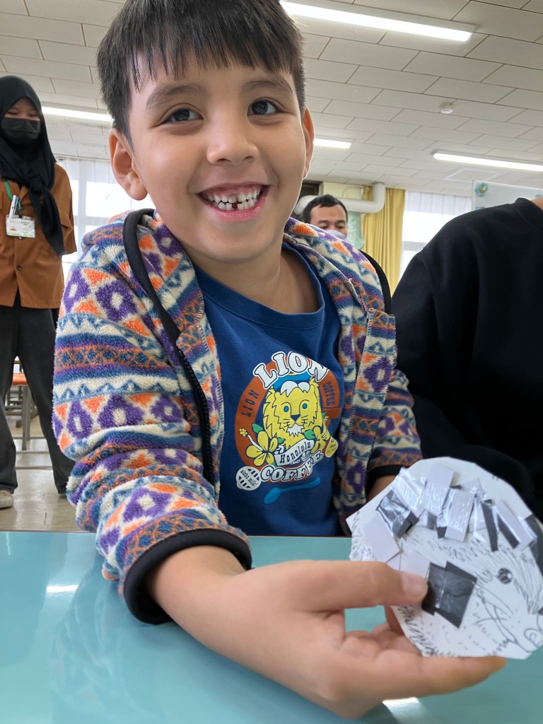 Mọi người cùng nghe và xem câu chuyện bằng giấy cảm nhận về tiết trời hiện tại rồi cùng với các cô giáo tạo ra nhân vật Nhím xuất hiện trong câu chuyện♬