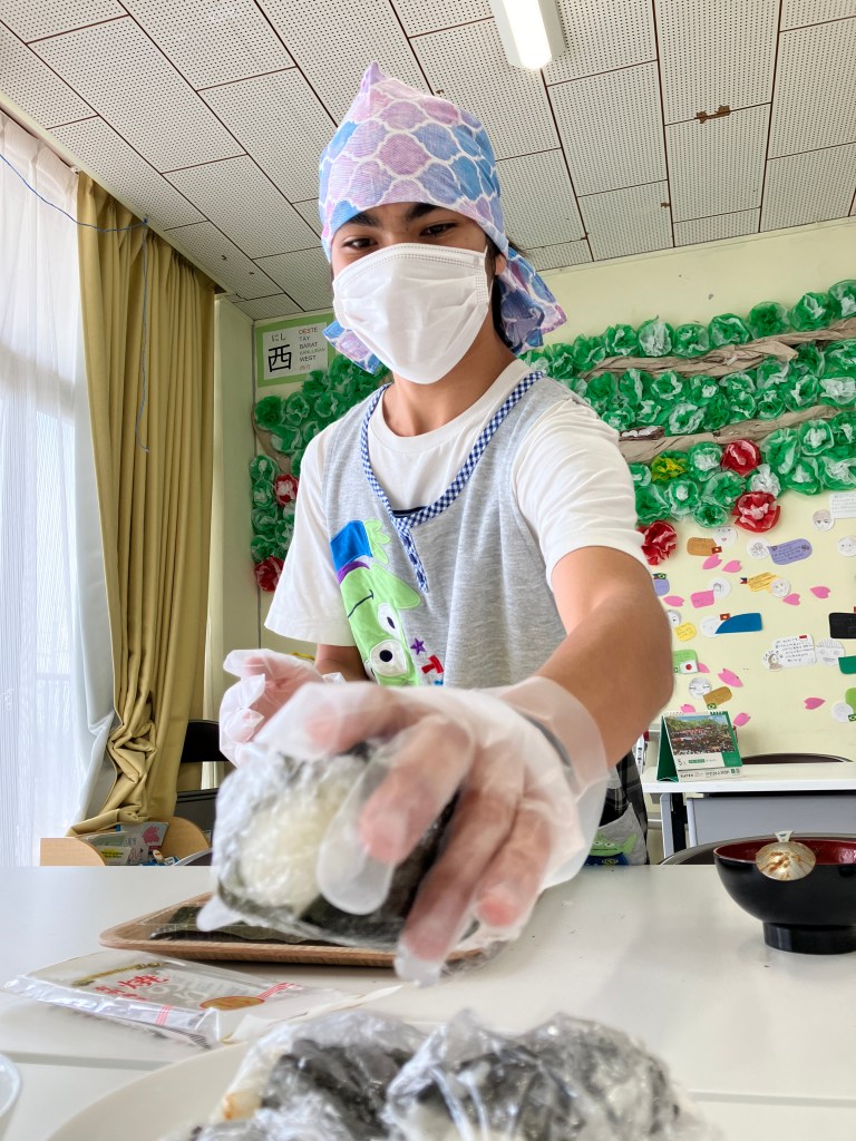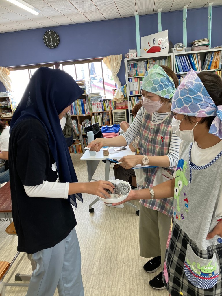 はじめて おにぎりを 作る子、はじめて おにぎりを 食べる子、ムスリムで 食べられないものがある子もいます。