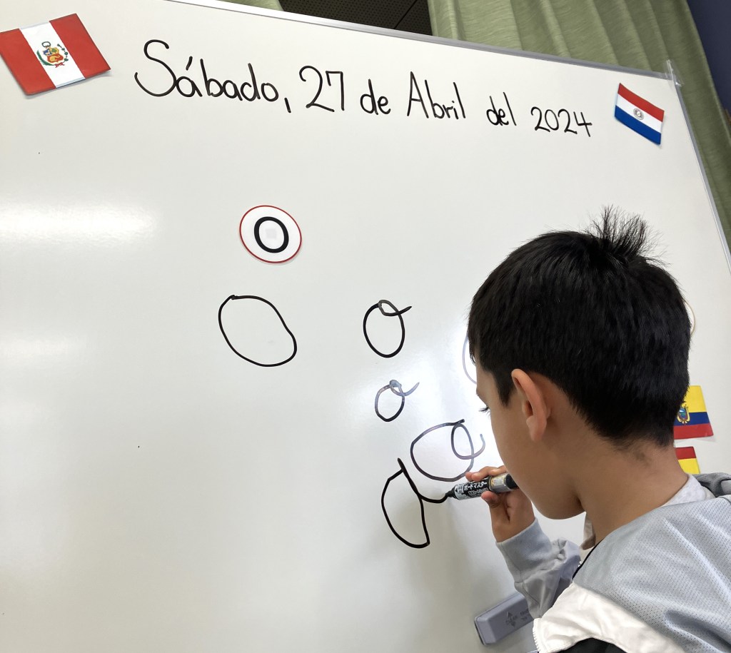 子どもたちにとっての大きなチャレンジは「お」を筆記体で書くことでした。