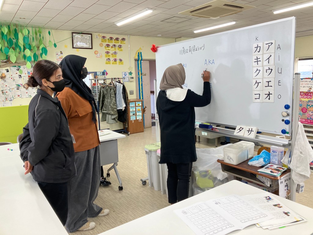 Anak-anak berinteraksi dengan orang sehingga mereka dapat belajar bahasa juga dapat berlatih berbicara bahasa Jepang melalui pembicaraan terhadap pelanggan.