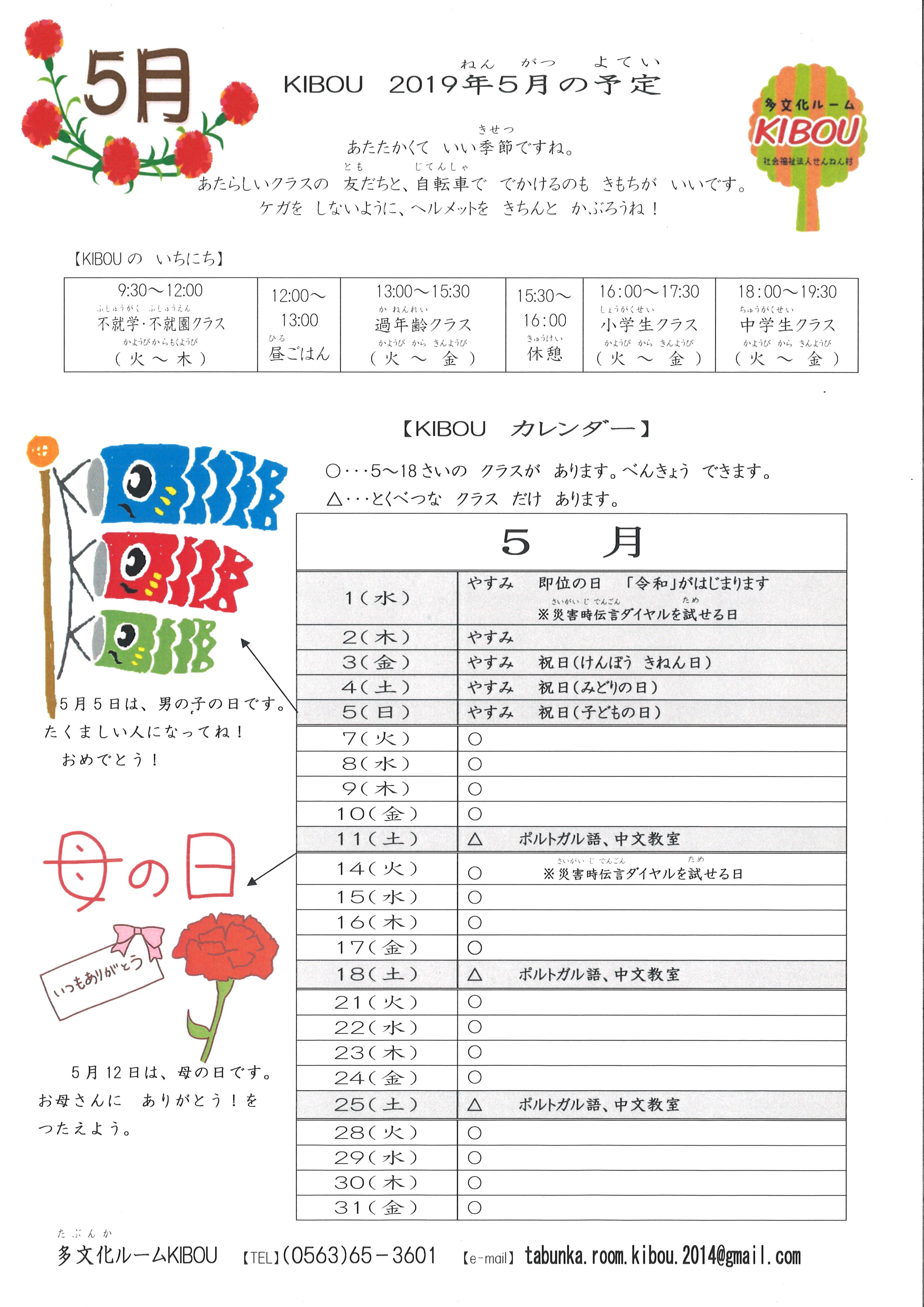 8月13日~ 17日、KIBOUは やすみです。