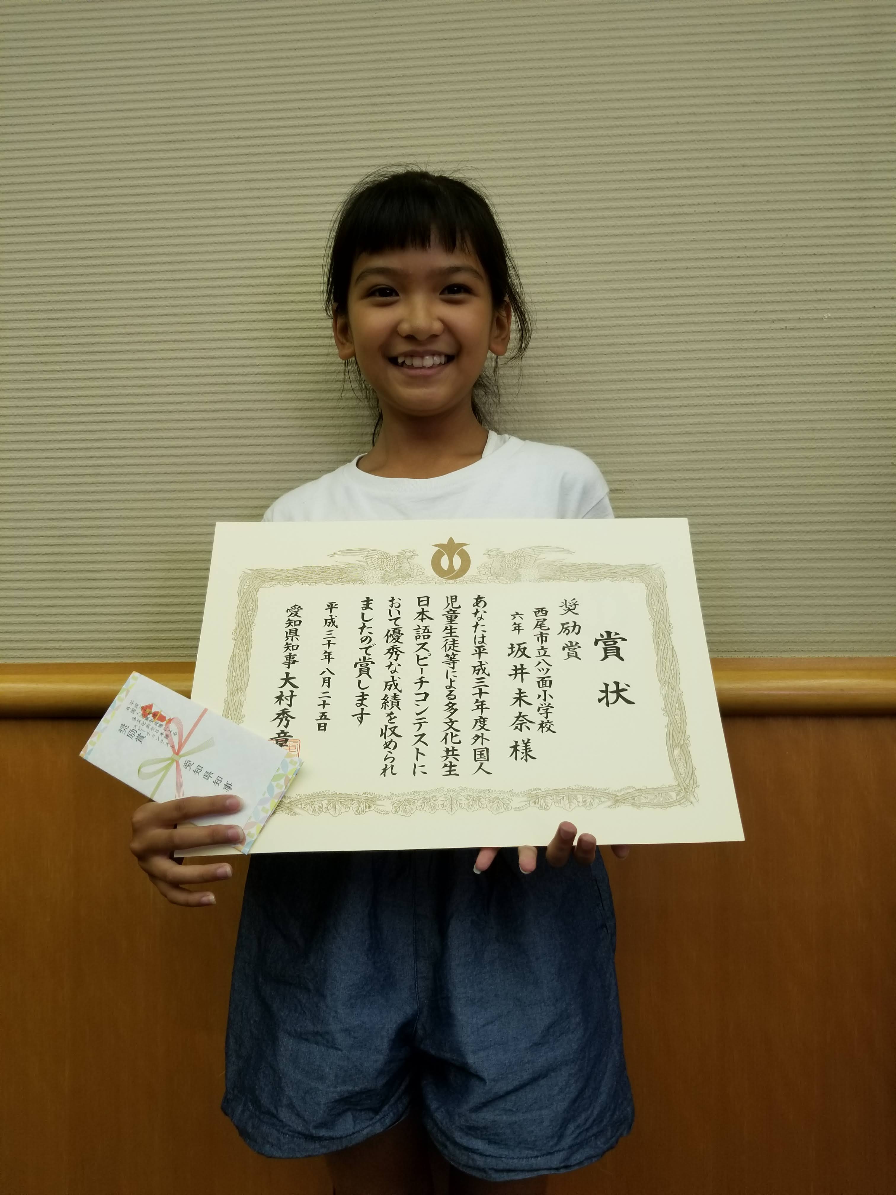 愛知県日本語スピーチコンテスト 入賞!