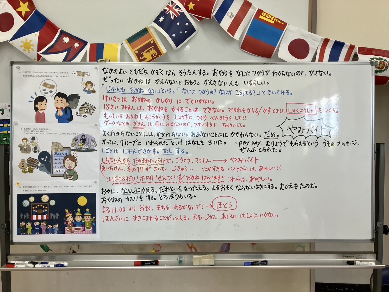 Untuk membantu anak-anak terhindar dari bahaya selama liburan musim panas, kami memberikan contoh-contoh spesifik, seperti bahaya media sosial, bahaya narkoba, dan penjelasan tentang pekerjaan paruh waktu ilegal. Para siswa yang datang ke tempat dapat berdiskusi juga berbagi pendapat satu sama lain.