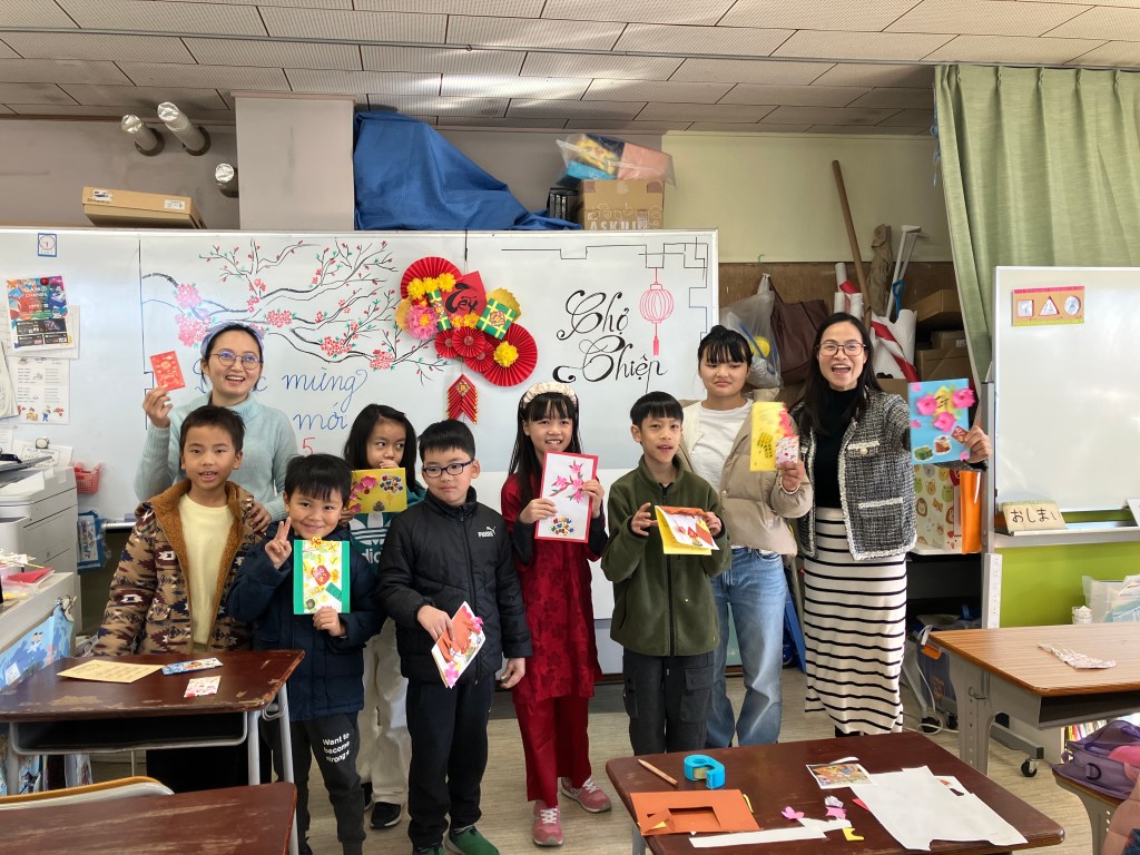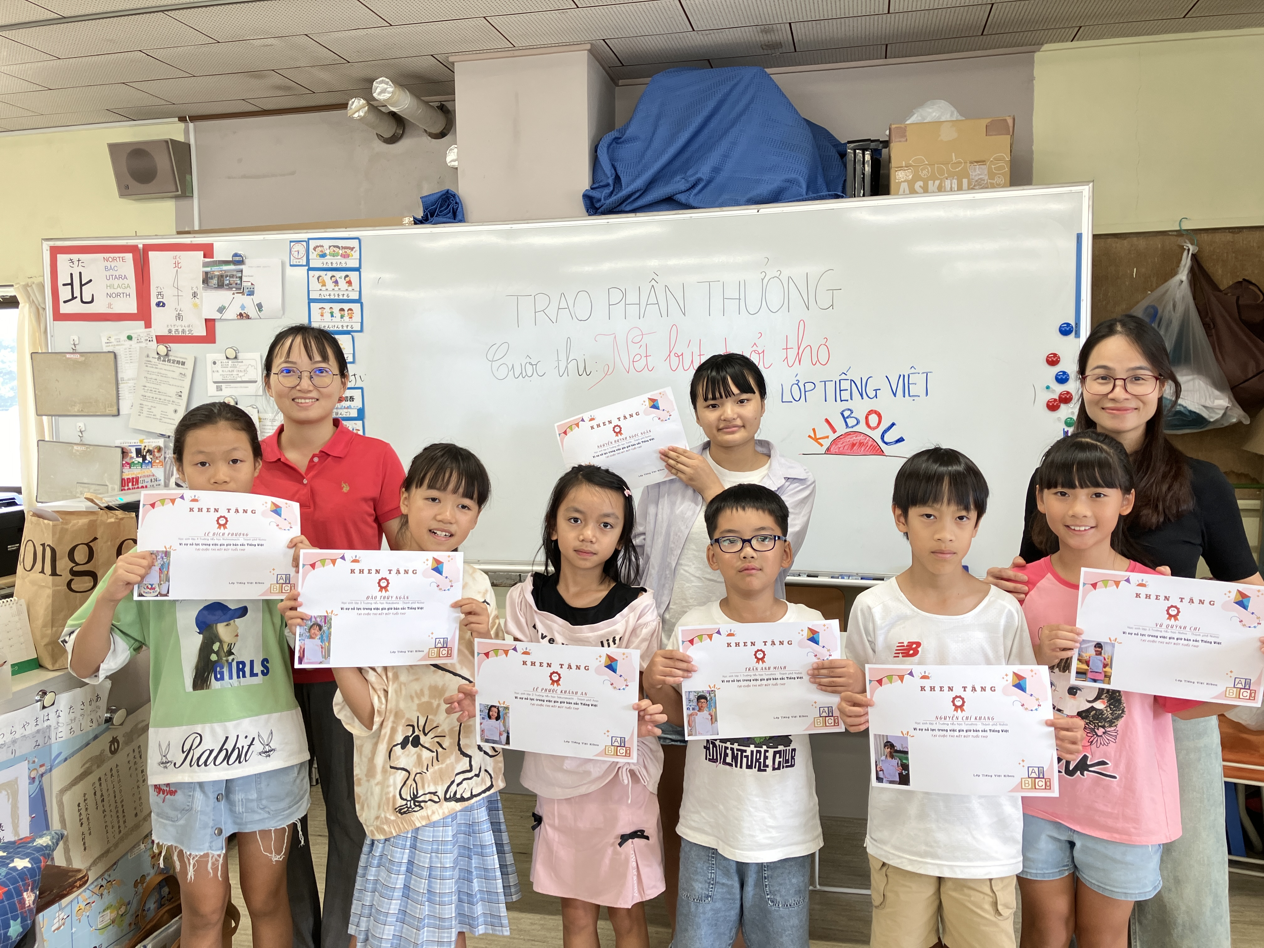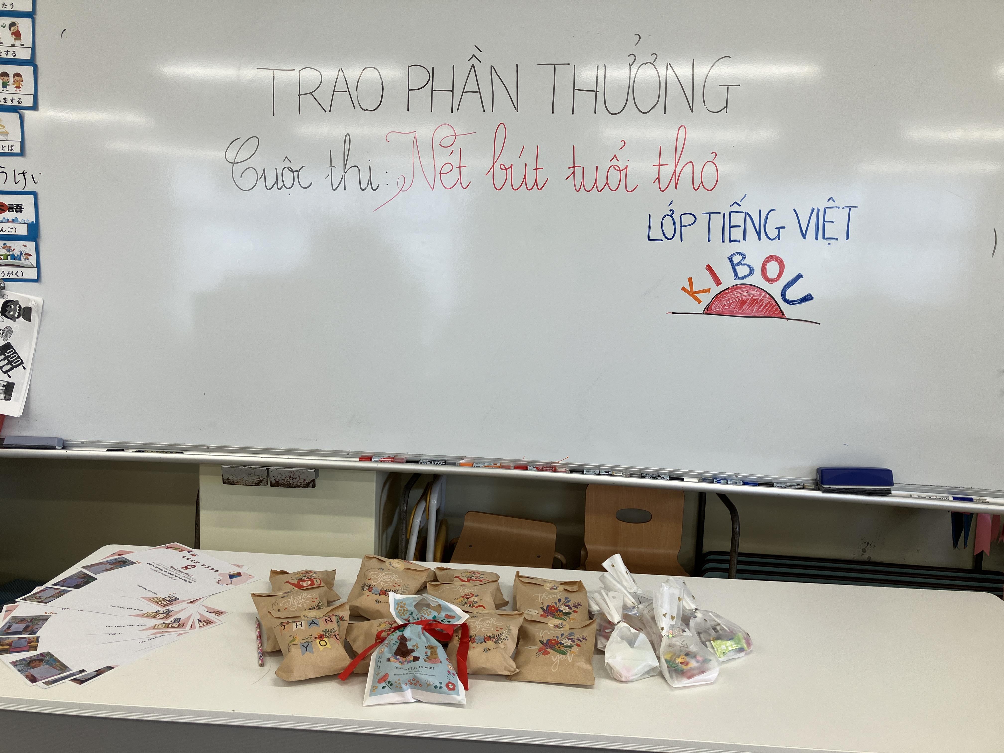 Cùng trong không khí ấy, lớp tiếng Việt KIBOU cũng đã tổ chức hoạt động tô màu, làm mũ cổ động cho các em nhỏ. Ngoài ra lớp cũng tổ chức hoạt động học tập, trò chuyện và văn nghệ tập thể (hát đồng ca)về ngày kỉ niệm.