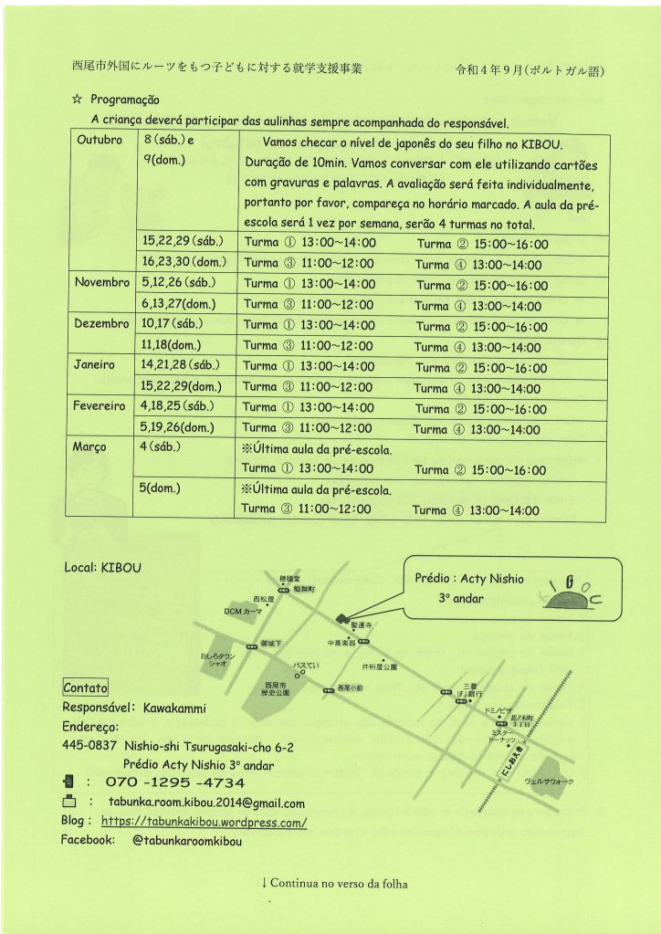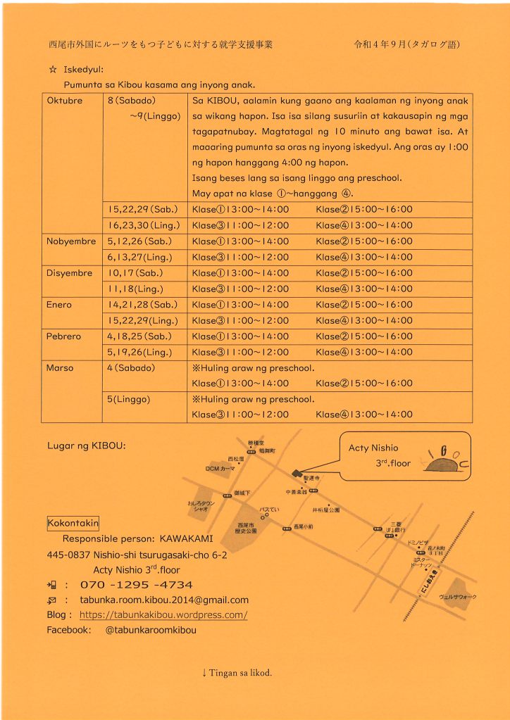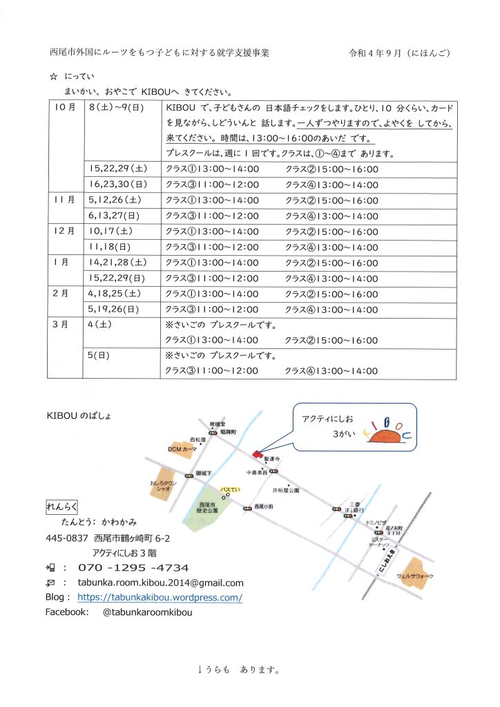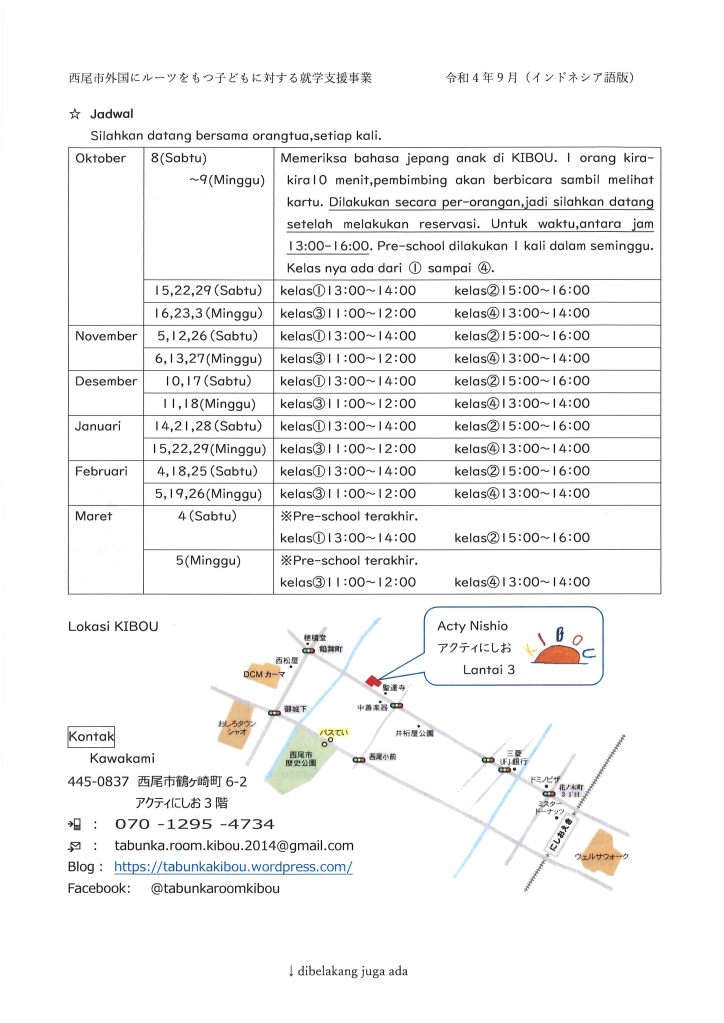 *Untuk orang yang baru pertama kali, harap datang jam 9:40. Untuk tujuan kelas, kami akan memeriksa level bahasa Jepang anda.