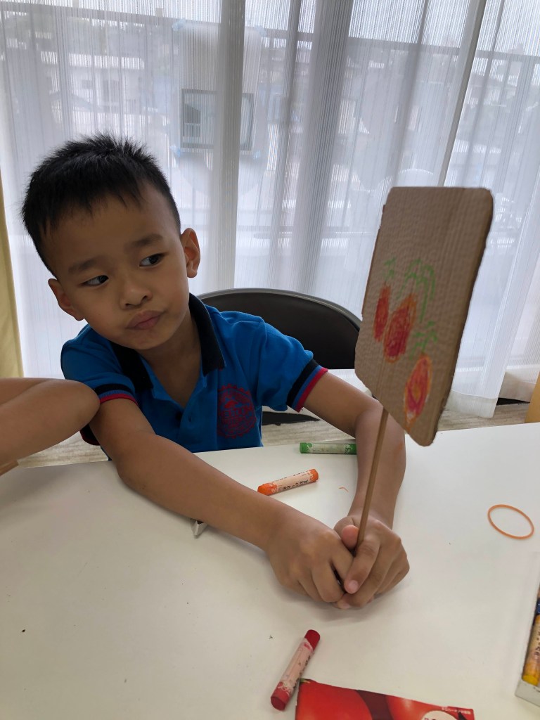 Các em đang làm bảng tên cho cây để có thể biết đó là mầm của cây gì.