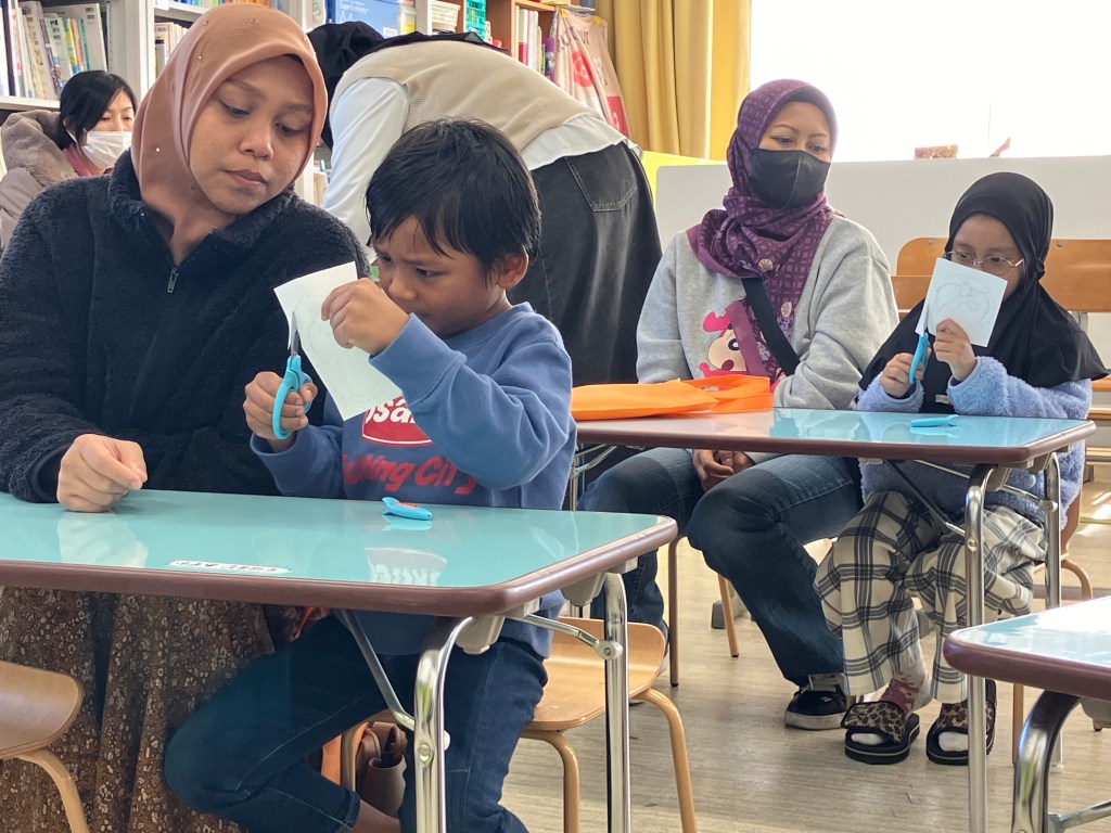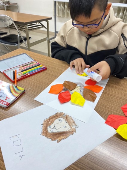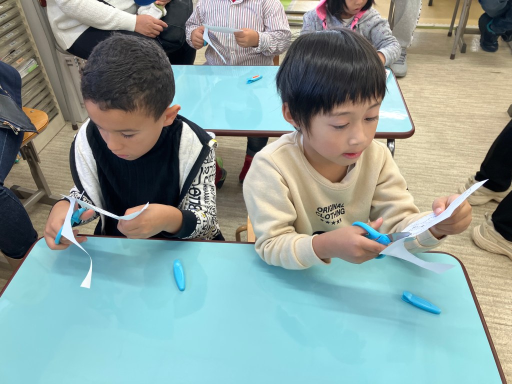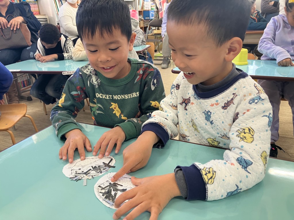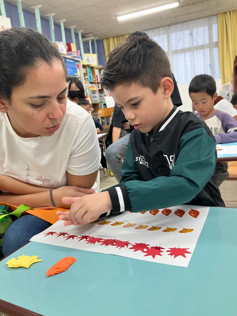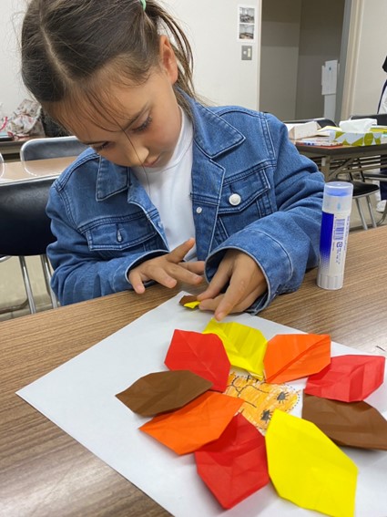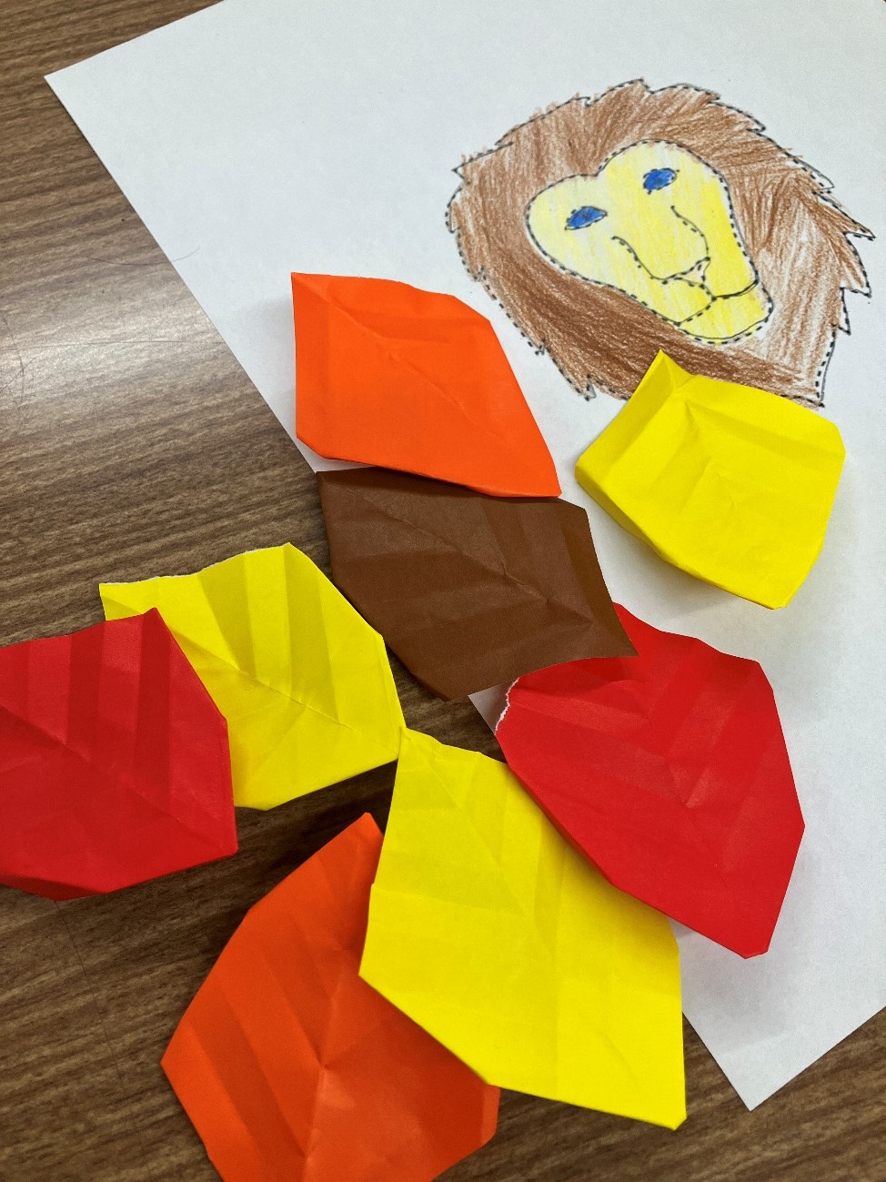 Contamos a história de um porco-espinho que adorava comer castanhas, depois disso aprendemos a dobrar castanha (KURI) com origami e no final cortamos o papel e fizemos o porco-espinho ⭐