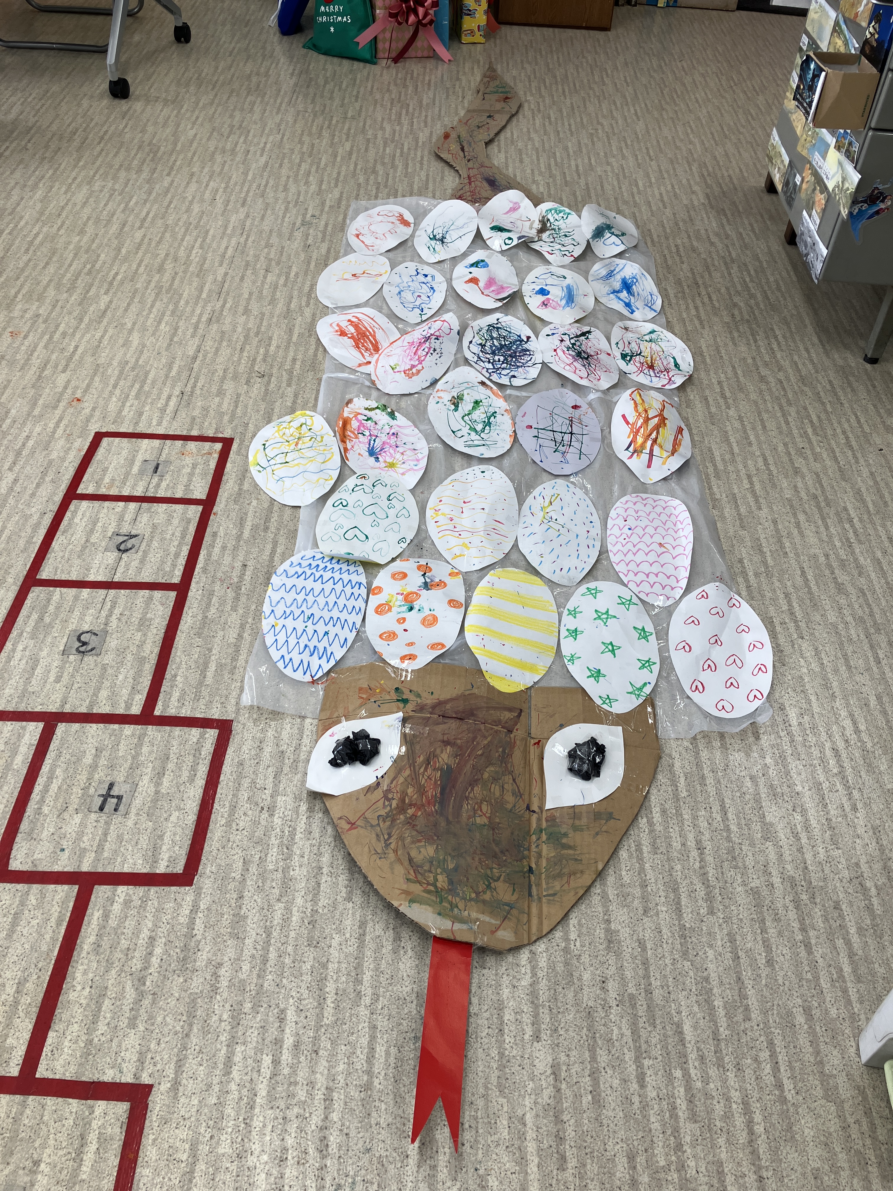 No final do ano passado, as turminhas da manhã (pré-escola e turma que não está frequentando nenhuma escola) fizeram uma serpente, simbolo do ano 2025.