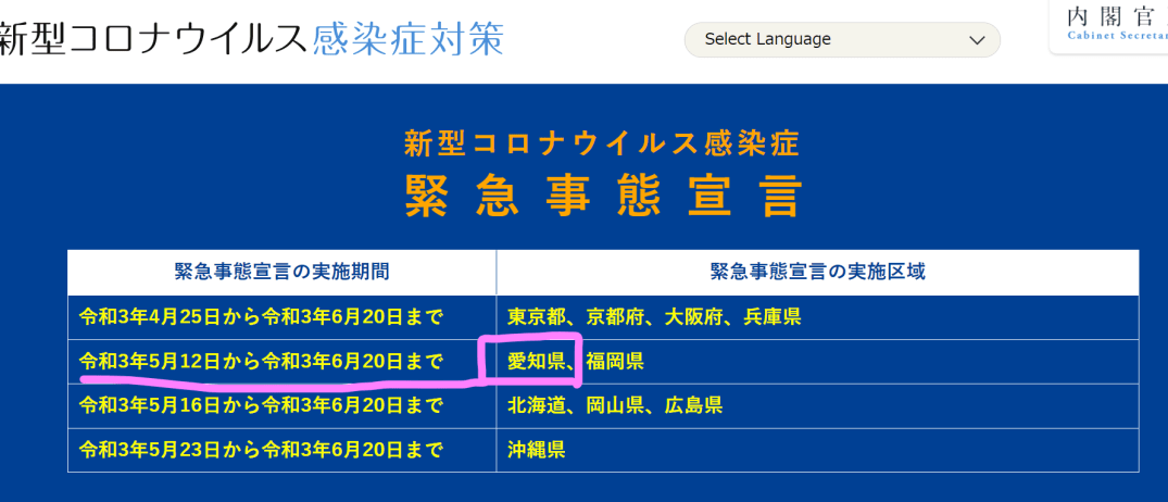 Pinalawak ang estado ng emerhensya or state of emergency sa AICHI-KEN hanggang Setyembre 30, 2021. HIndi pwedeng pumasok sa pampublikong pasilidad ng Kibou Nishio hanggang Setyembre 30.